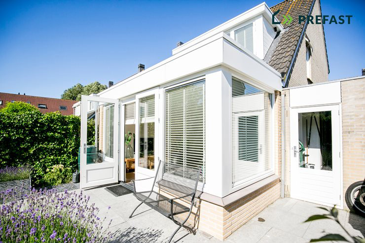 Bij Prefast werken we met prefab uitbouwen. Dat betekent dat we uw uitbouw in onze eigen fabriek produceren en binnen enkele dagen bij u in Haarlem plaatsen. Prefab uitbouwen bieden diverse voordelen ten opzichte van traditionele uitbouwen: